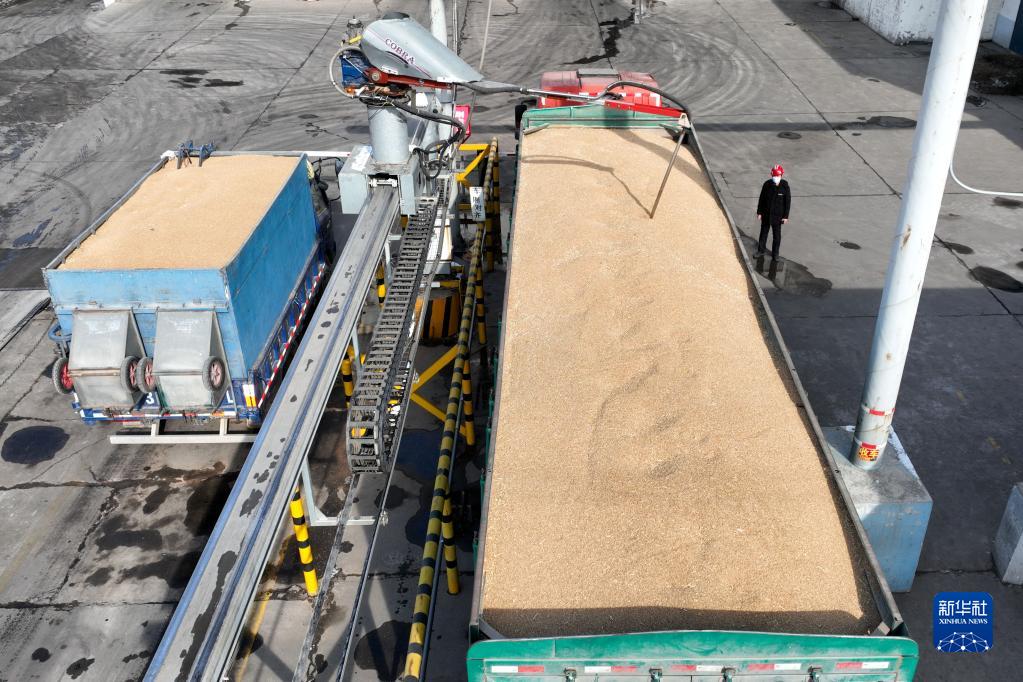 1月15日,在柏鄉縣一家面粉加工企業,自動取樣機對收購的小麥進行取樣。