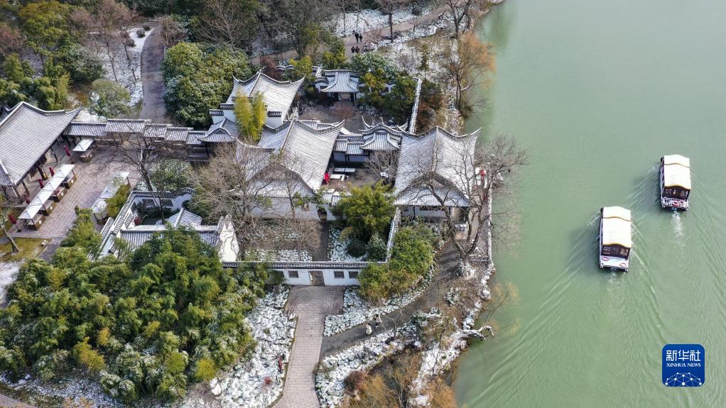 這是1月15日拍攝的江蘇揚州瘦西湖雪景(無人機照片)。
