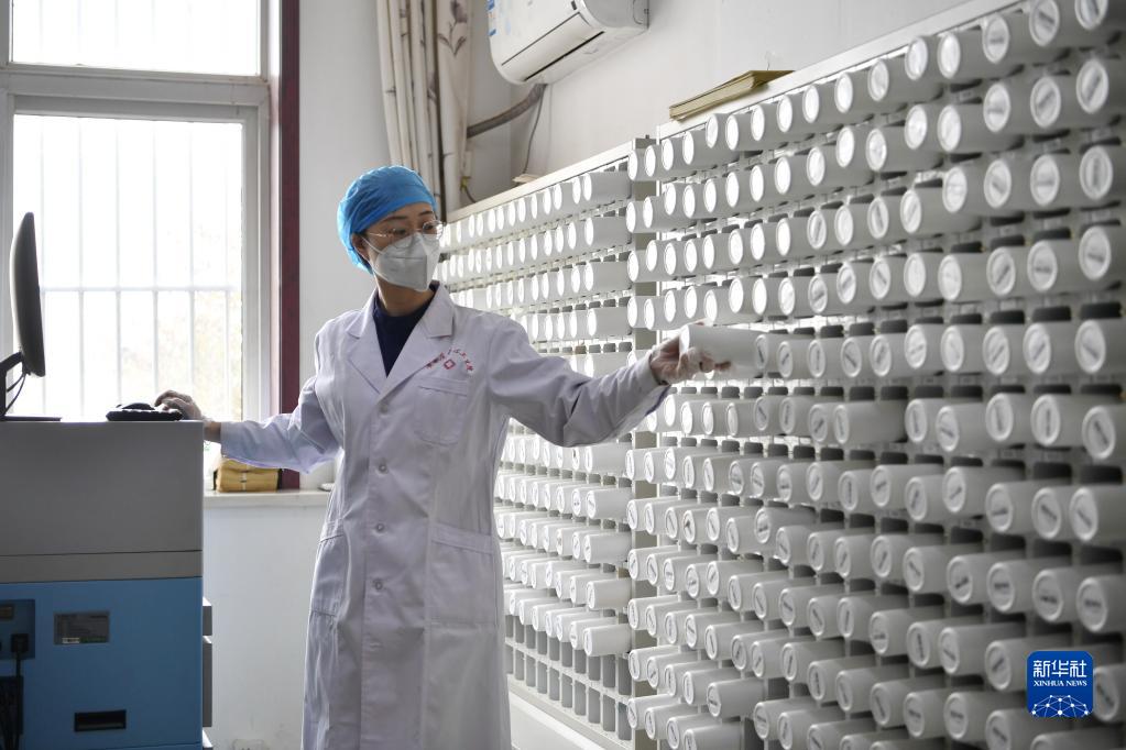 1月15日,唐山市豐南區黃各莊鎮中心衛生院的醫師在“國醫堂”內配藥。