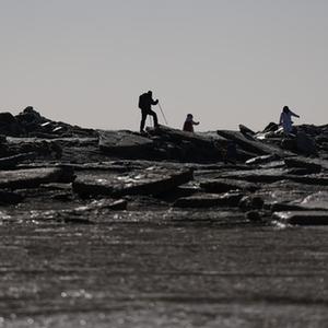 1月15日,業(yè)余選手在體驗冰凌徒步。
