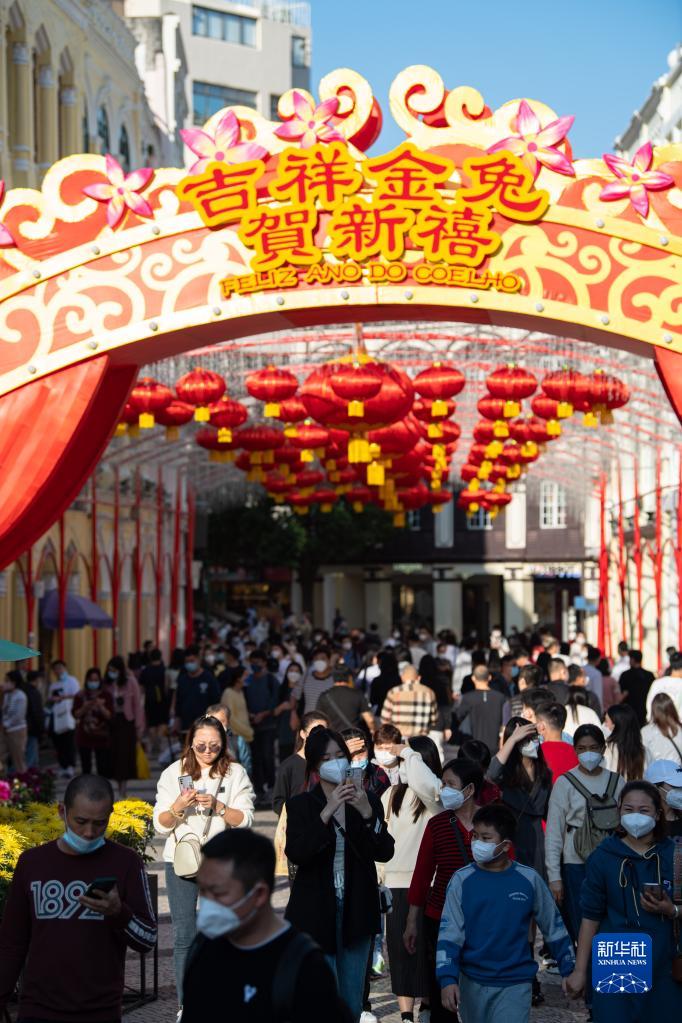 1月14日,游客在澳門議事亭前地游覽。新華社記者 張金加 攝