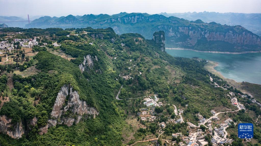 貴州省黔西市新仁苗族鄉(xiāng)化屋村一景(2022年5月8日攝,無人機照片)。新華社記者 陶亮 攝