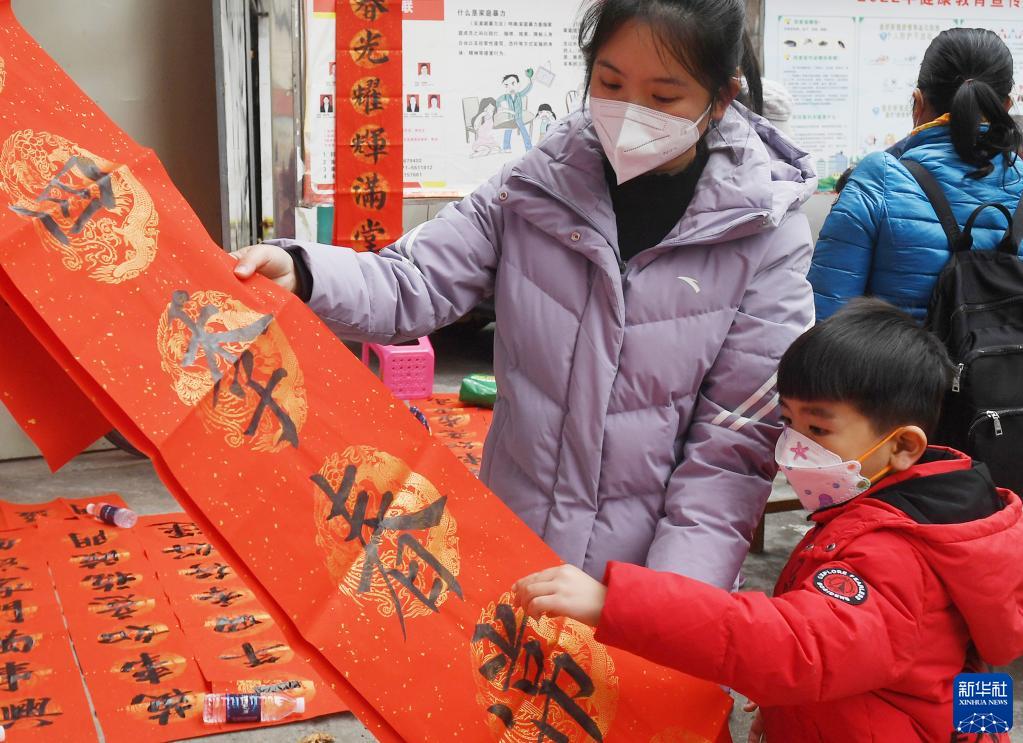 1月16日,在廣西南寧市西鄉塘區新陽街道永和村,村民在欣賞剛剛完成書寫的春聯。