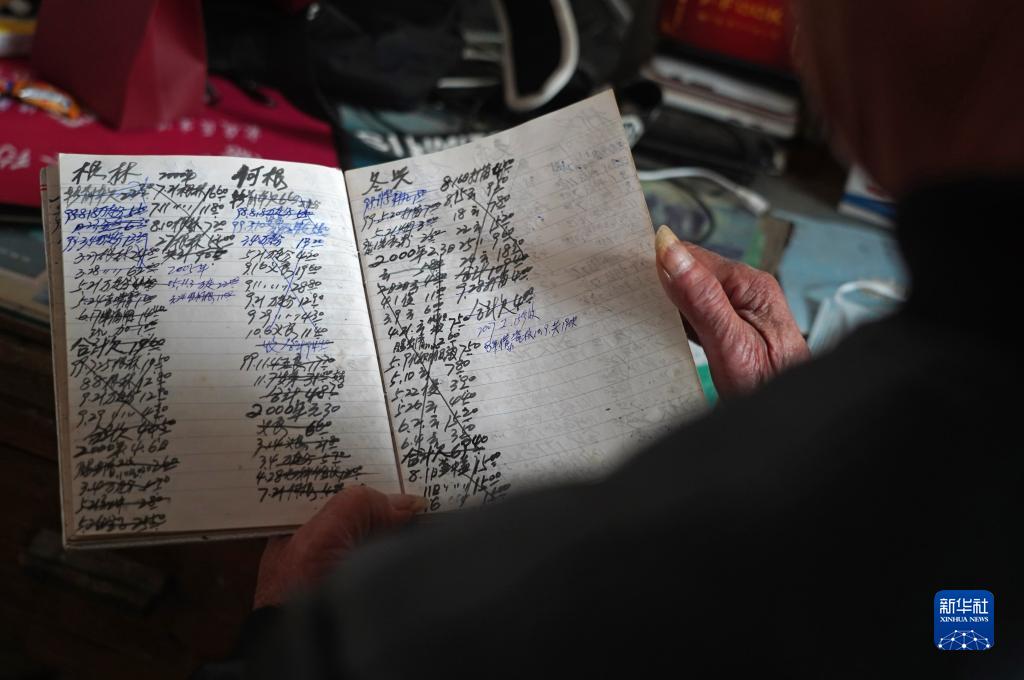 在江西省豐城市鐵路鎮楊坊村,村醫徐秋生在家中翻看賬本,生活清貧的徐秋生對家庭困難的村民患者常常免費(1月10日攝)。