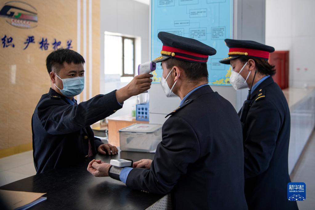 在拉薩機輛整備中心,黃起崗(中)在出勤前接受身體情況檢測(1月11日攝)。