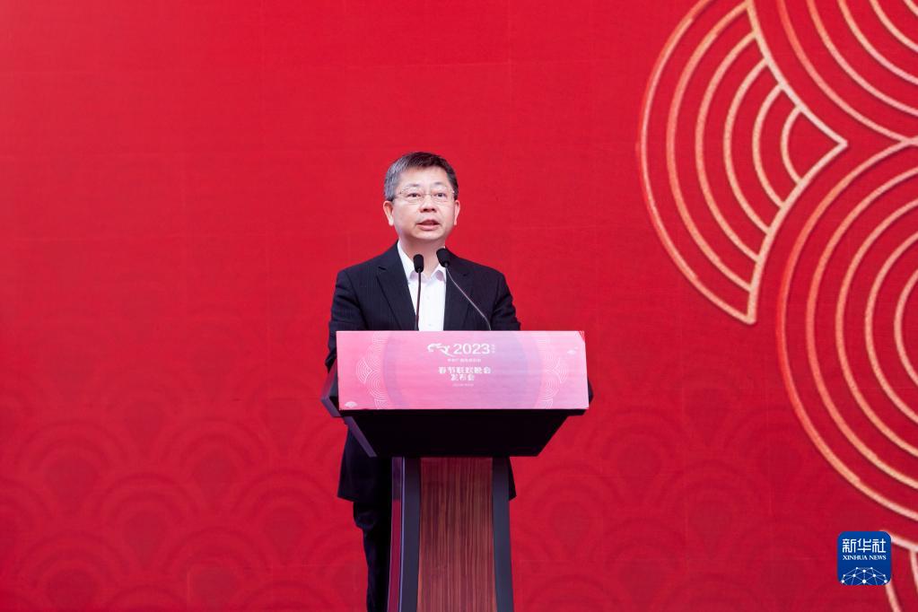 1月16日,在《2023年春節聯歡晚會》新聞發布會上,中央廣播電視總臺編務會議成員姜文波介紹春晚科技創新應用情況。