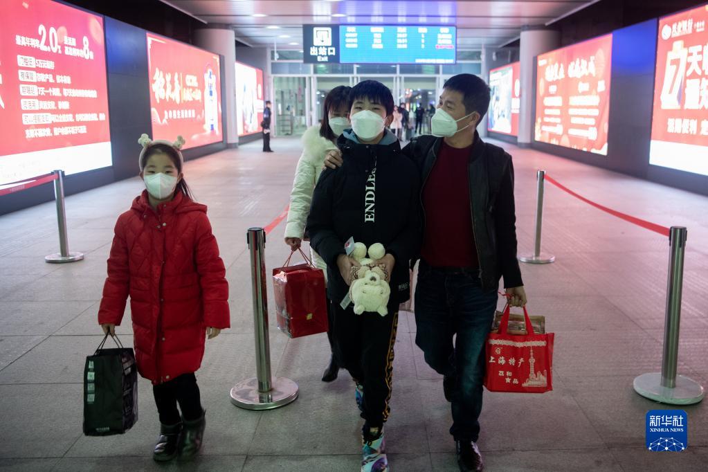 1月15日,易生軍在湖北十堰東站出站口與家人團聚。