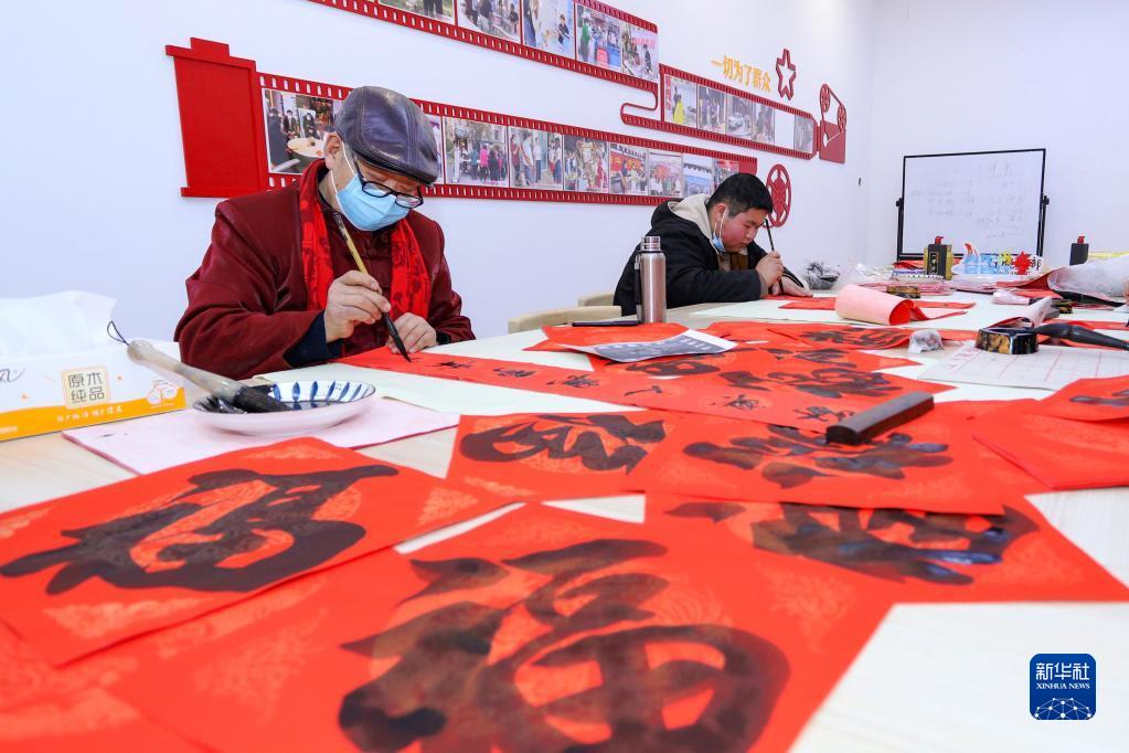 春節臨近,多地組織書法志愿者走進社區、工地等場所,為人們書寫春聯和福字,迎接春節的到來。
