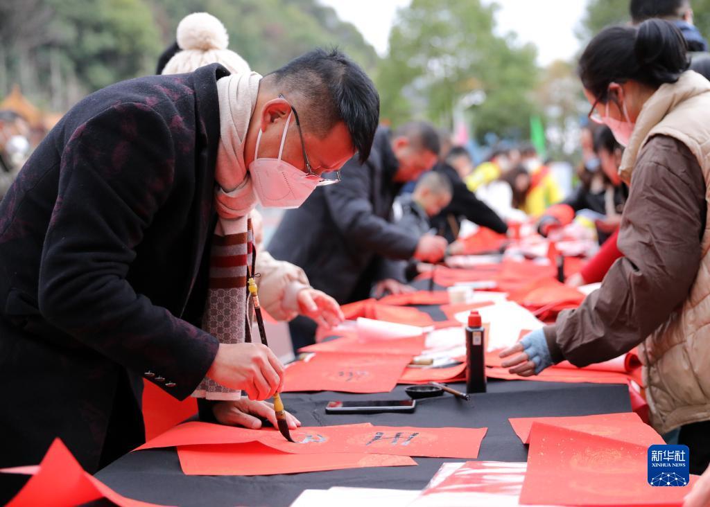 春節(jié)臨近,多地組織書法志愿者走進(jìn)社區(qū)、工地等場所,為人們書寫春聯(lián)和福字,迎接春節(jié)的到來。