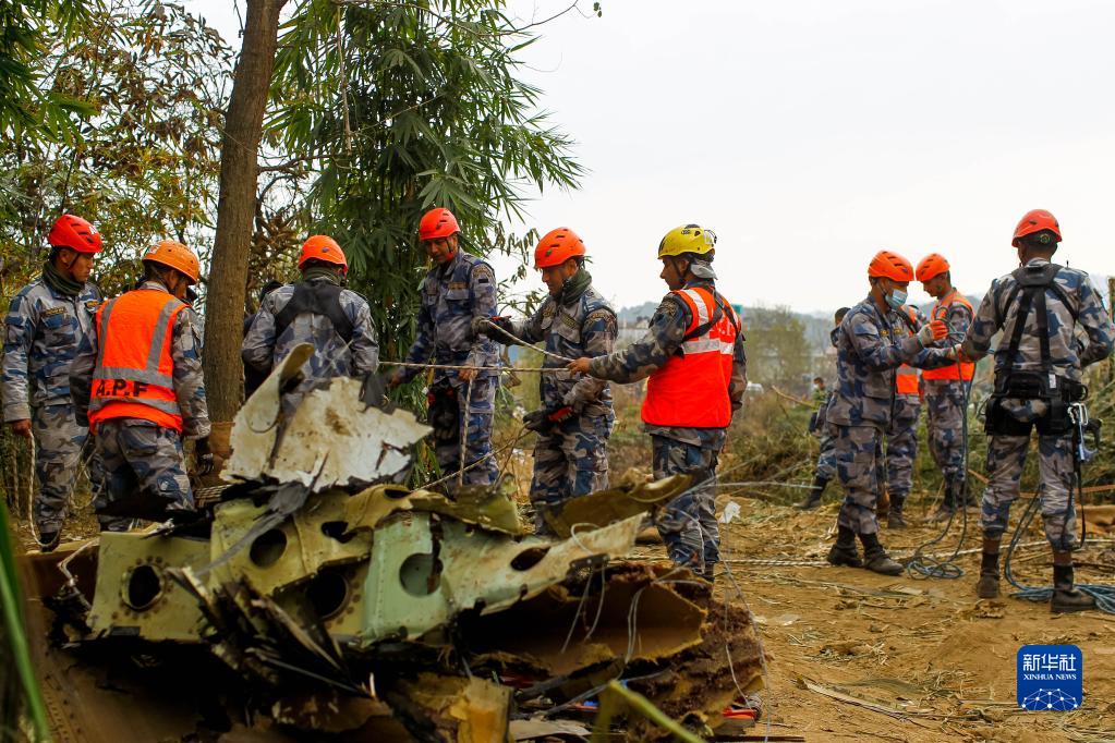 1月16日,救援人員在尼泊爾博克拉地區墜機現場工作。
