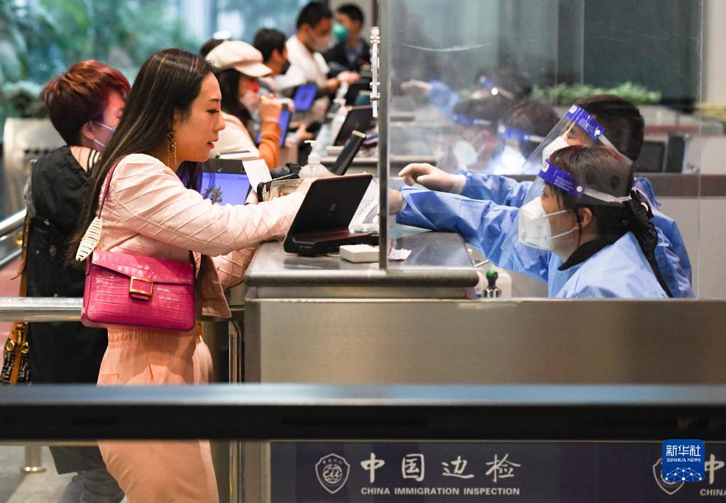 1月19日,海口美蘭邊檢站民警在為入境旅客辦理入境手續。