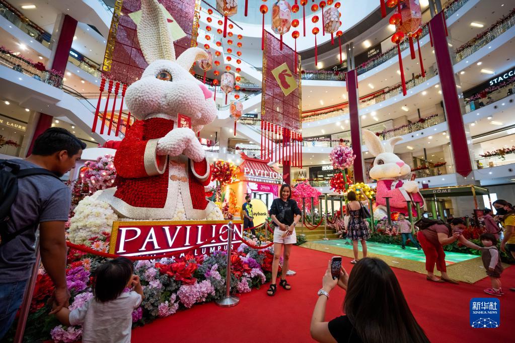 近日,馬來西亞大街小巷裝點著各種中式元素的春節裝飾,大紅燈籠隨處可見,兔子造型惹人喜愛……四處點亮的中國紅帶來濃濃年味的同時,更增添人們對中華文化的了解。