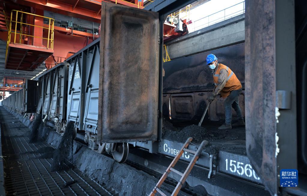 1月19日,在大唐安徽發電有限公司淮南洛河發電分公司,工作人員進行卸煤作業。