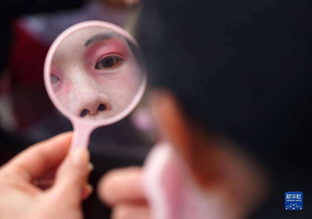 1月20日,在江西省廣昌縣甘竹鎮龍溪村,廣昌縣旴源農民劇團的演員在演出孟戲前化妝。