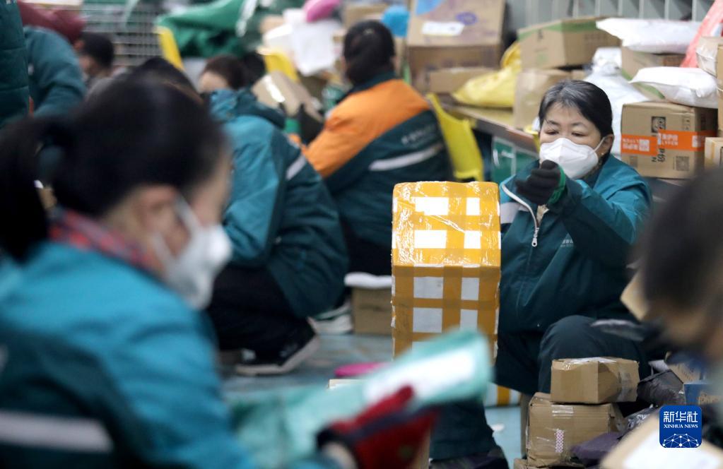 1月21日,在中國郵政集團有限公司石家莊市分公司紅星攬投部,工作人員在分揀快遞。