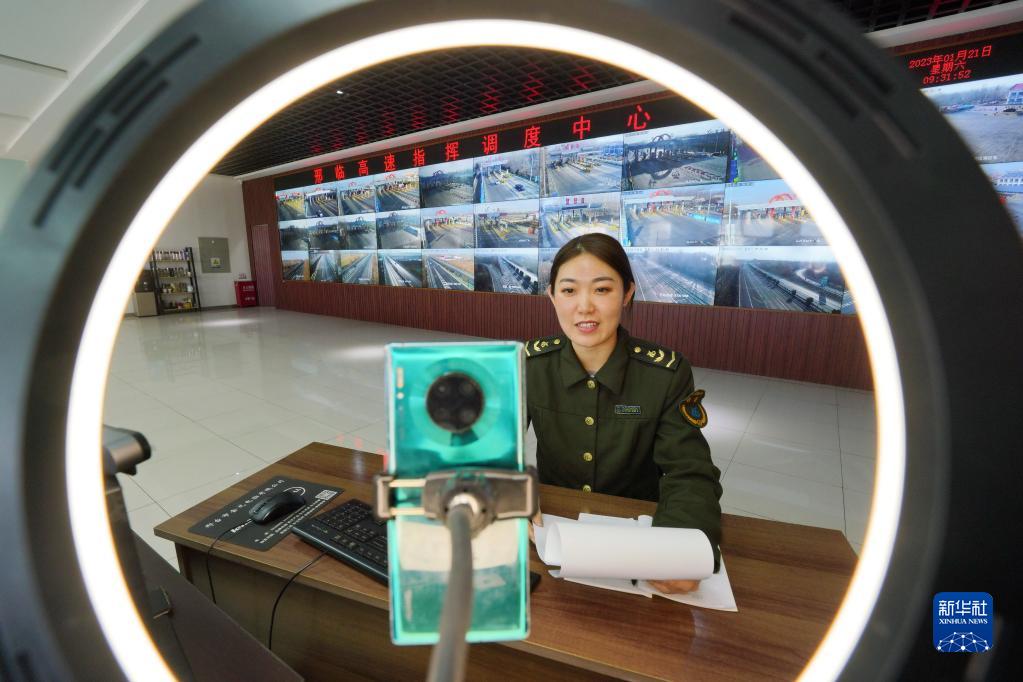 1月21日,在河北邢臨高速公路開發有限公司指揮調度中心,主播曹曉玉介紹路況信息。