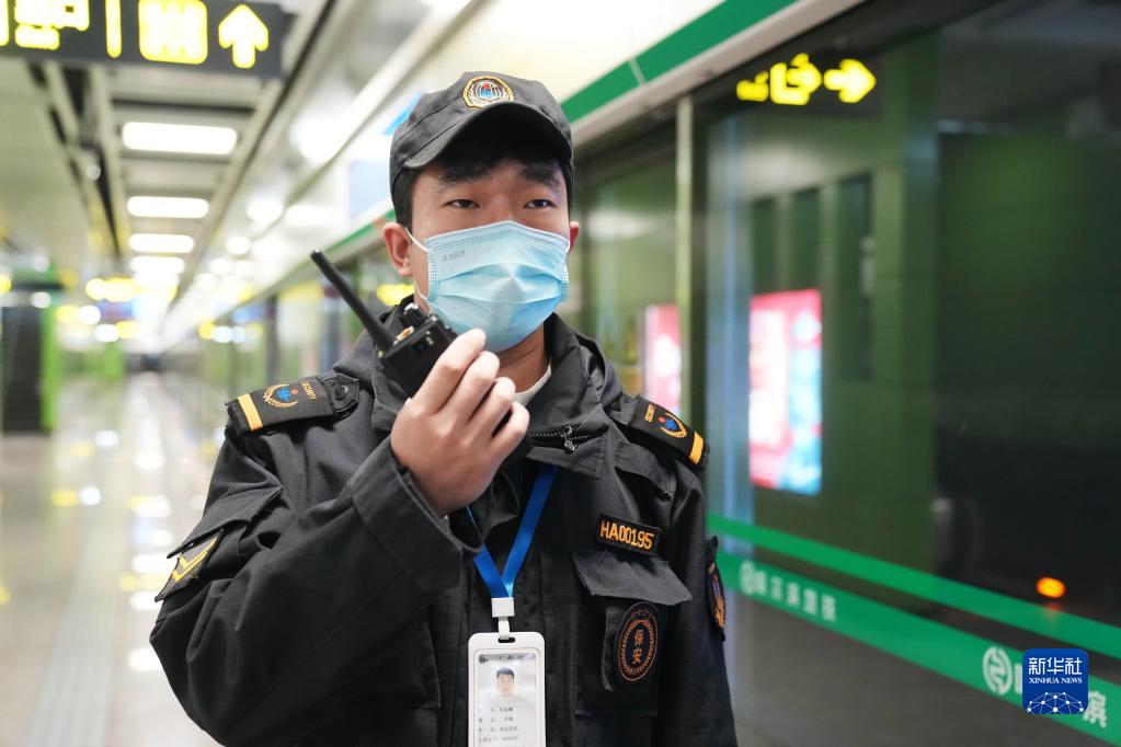 1月21日,在哈爾濱地鐵2號(hào)線省醫(yī)院站,站臺(tái)保安付延楠堅(jiān)守崗位。