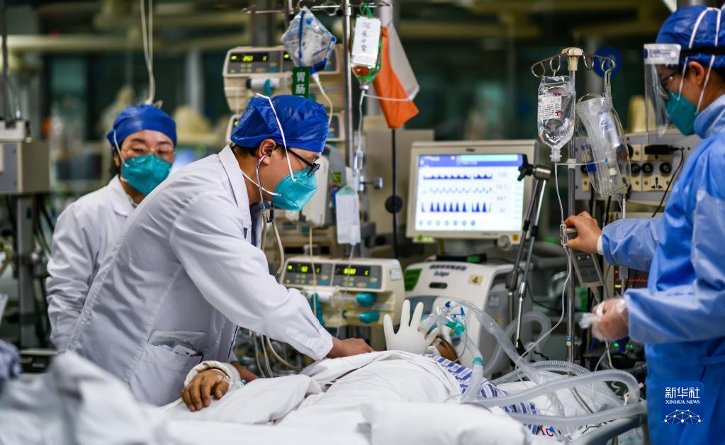 1月21日,云南省第一人民醫(yī)院重癥監(jiān)護(hù)科醫(yī)生倪礦在病房為病人檢查。