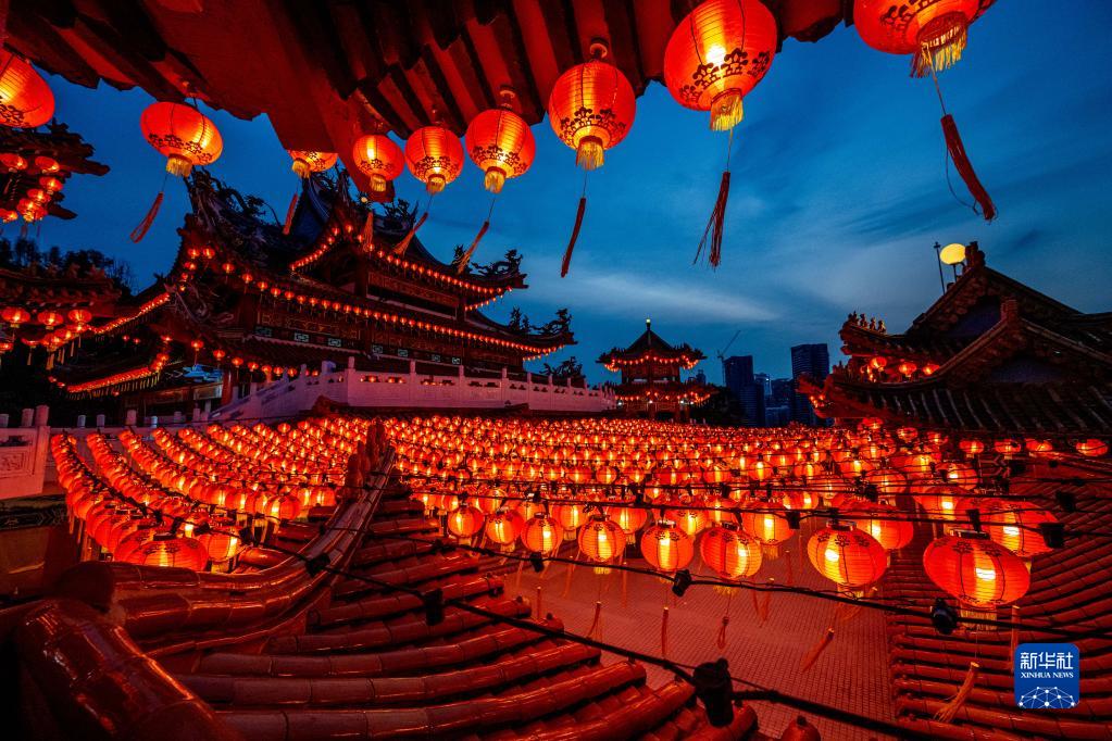 馬來西亞吉隆坡天后宮從13日開始每晚點(diǎn)亮6000只紅燈籠,迎接農(nóng)歷癸卯兔年的到來。