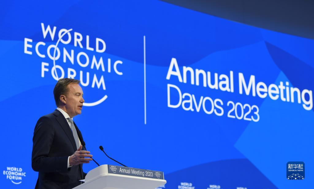 1月20日,在瑞士達沃斯,世界經濟論壇總裁博爾格·布倫德在世界經濟論壇2023年年會作閉幕致辭。