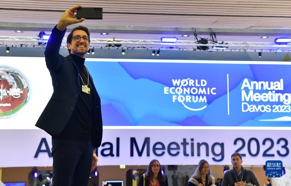 1月20日,在瑞士達沃斯,一名與會者在世界經濟論壇2023年年會閉幕后留影。