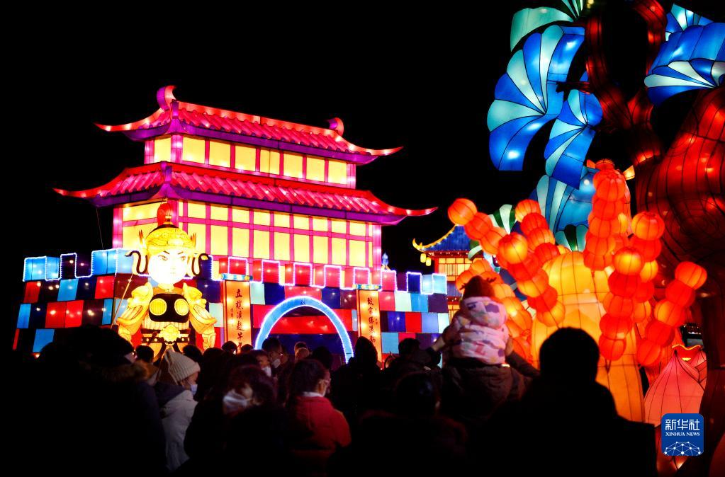 人們在西安城墻新春燈會賞燈游玩(1月20日攝)。