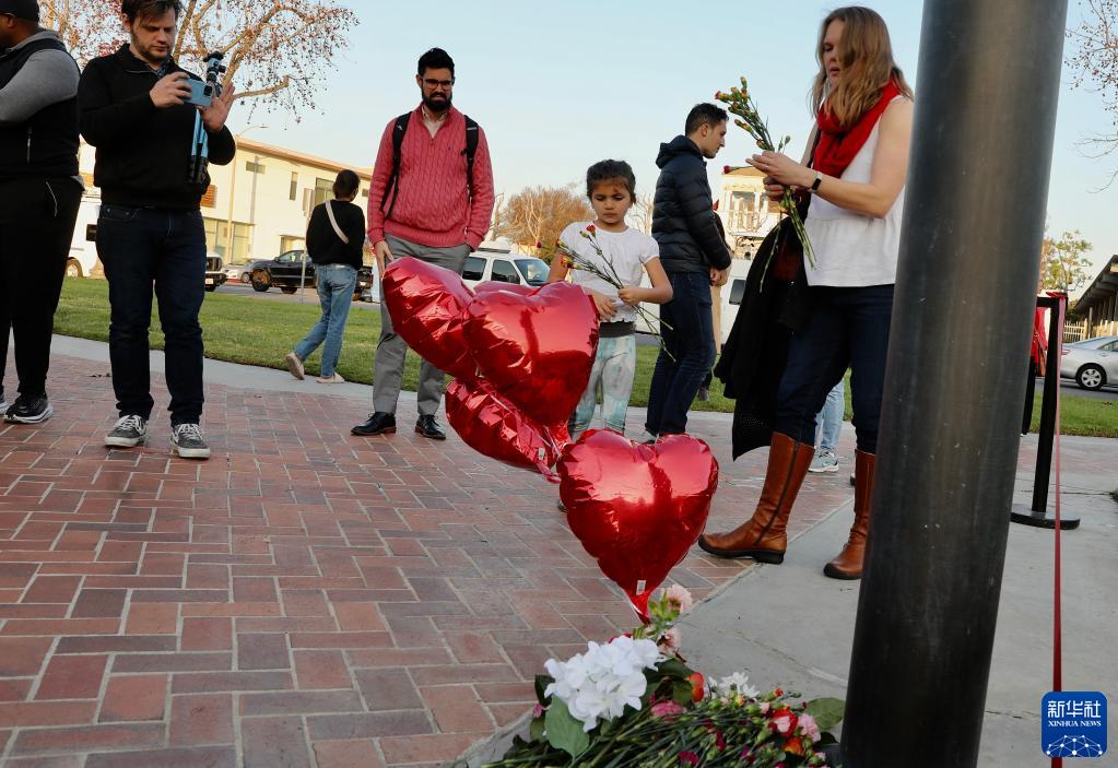 1月22日,人們在美國加利福尼亞州蒙特雷帕克市政廳前對槍擊案遇難者表示哀悼。