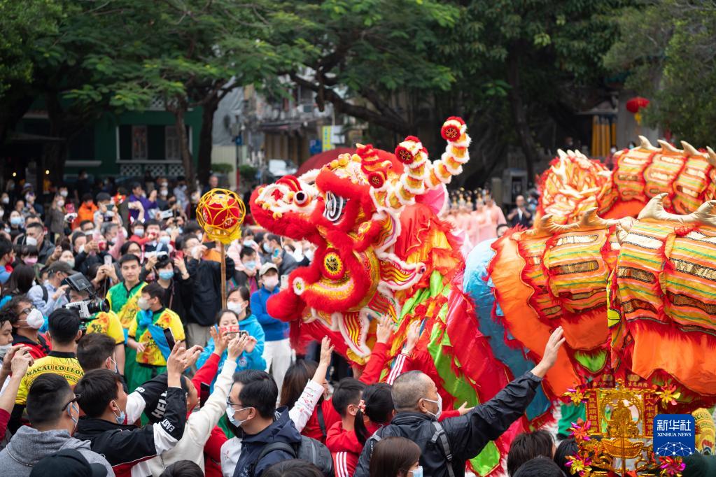 當日是大年初二,澳門旅游局在媽閣廟前安排了舞龍舞獅、變臉等賀歲活動,吸引大批市民及游客駐足觀賞。