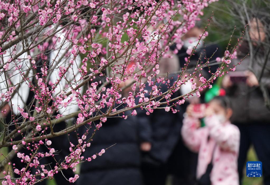 當日是正月初二,位于福州鼓山風景區相懷梅園里的梅花相繼綻放,吸引游客前來觀光賞梅。