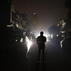 1月23日,一名男子在大規模停電期間走在巴基斯坦伊斯蘭堡街頭。