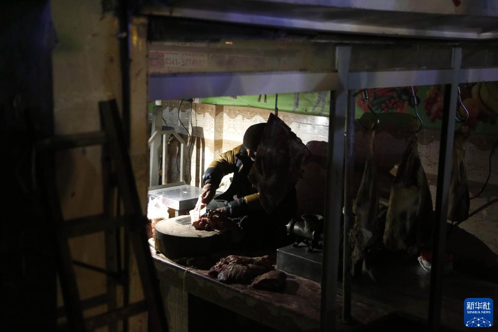 1月23日,在巴基斯坦伊斯蘭堡,一家肉鋪在大規(guī)模停電期間營業(yè)。