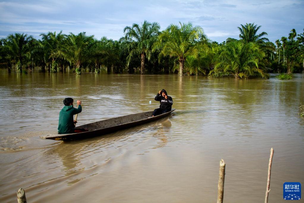 1月23日,在印度尼西亞亞齊特區(qū)北亞齊地區(qū),人們?cè)诤樗谐霜?dú)木舟。