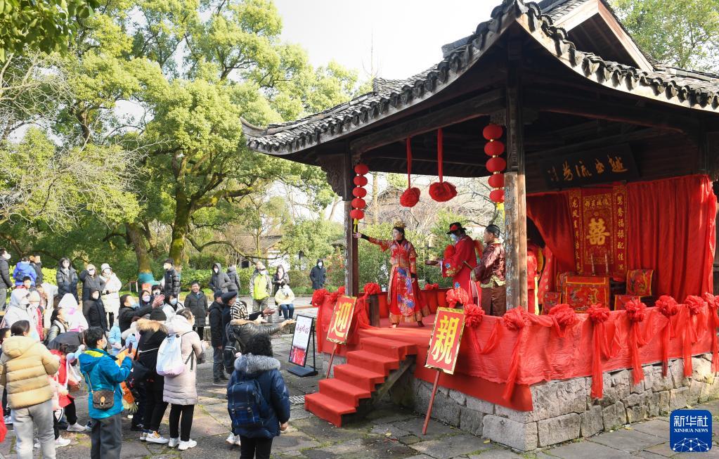 春節(jié)期間,浙江杭州西溪濕地推出水鄉(xiāng)婚俗表演、年俗集市等活動,烘托出濃濃年味。