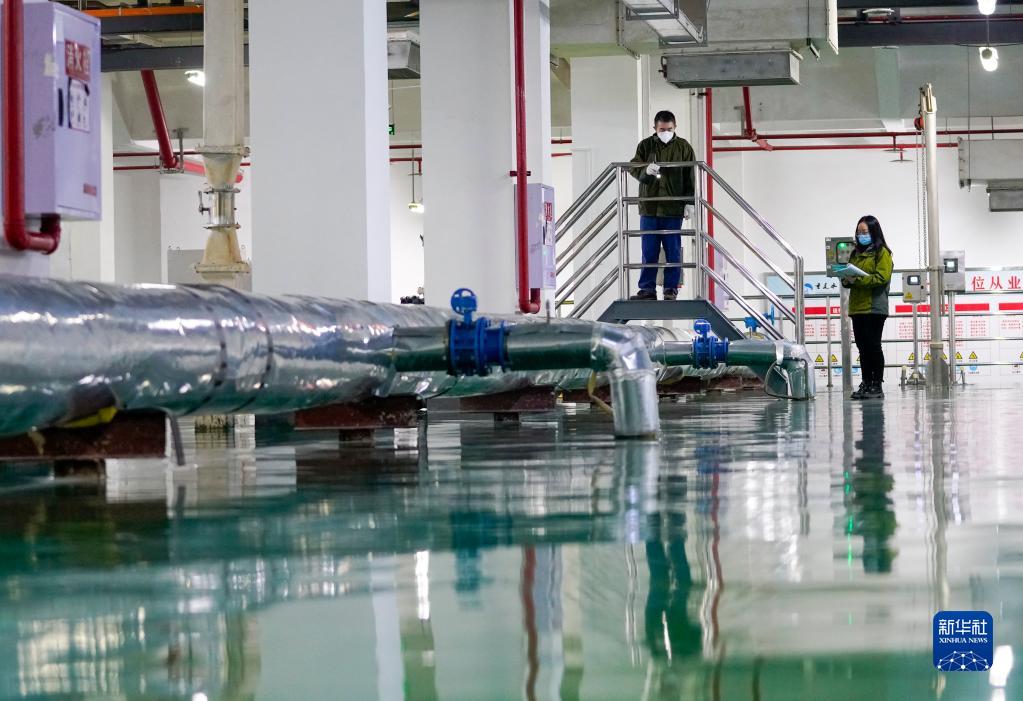 1月24日,重慶市悅來污水處理廠的值班人員對污水處理設備和運行情況進行日常巡查。