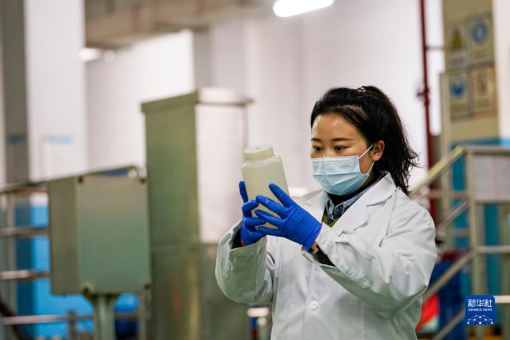 1月24日,重慶市悅來污水處理廠的化驗員對經過處理后的城市污水水樣進行人工目測檢查。