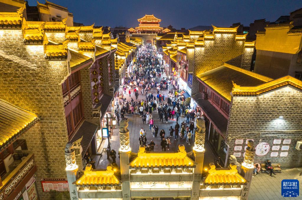1月23日,市民和游客在湖北襄陽(yáng)古城游玩、賞景(無人機(jī)照片)。