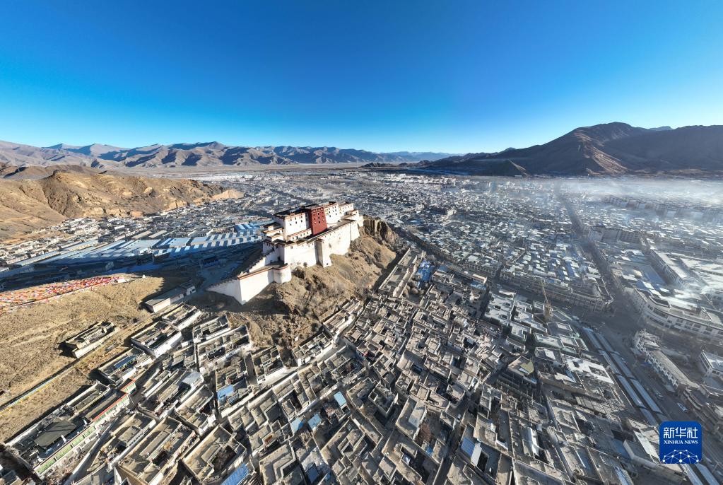 1月24日拍攝的日喀則市的清晨(無人機照片)。