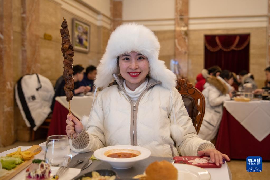 1月24日,在黑龍江哈爾濱市道里區馬迭爾西餐廳,人們在享用美食。