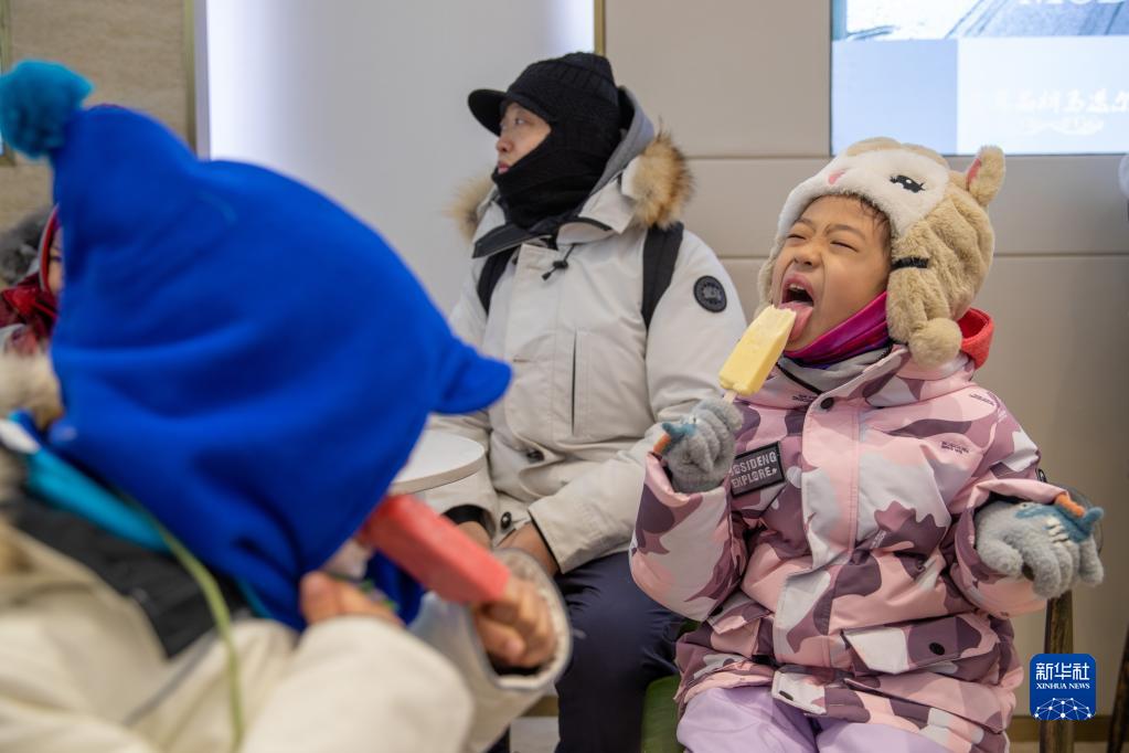1月24日,在黑龍江哈爾濱市道里區(qū)馬迭爾冷飲廳,小朋友在吃冰棍。