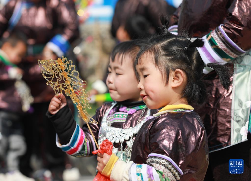 1月24日,在貴州省黔東南苗族侗族自治州從江縣剛邊壯族鄉銀平村,兩名小女孩在品嘗糖畫。