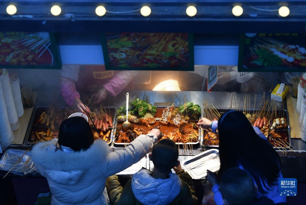 1月24日,消費者在寧夏銀川市西夏區懷遠夜市選購美食。