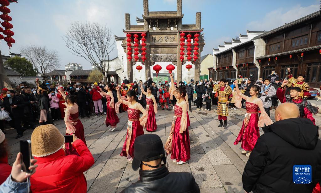 當(dāng)日,浙江省杭州建德市梅城鎮(zhèn)嚴(yán)州古城開啟“宋福杭州年”新春系列文旅活動,包括古城開城儀式、“福祿壽三星”送禮、民俗演藝等豐富多彩的活動,展示獨(dú)具魅力的嚴(yán)州文化,讓游客感受古城宋韻。