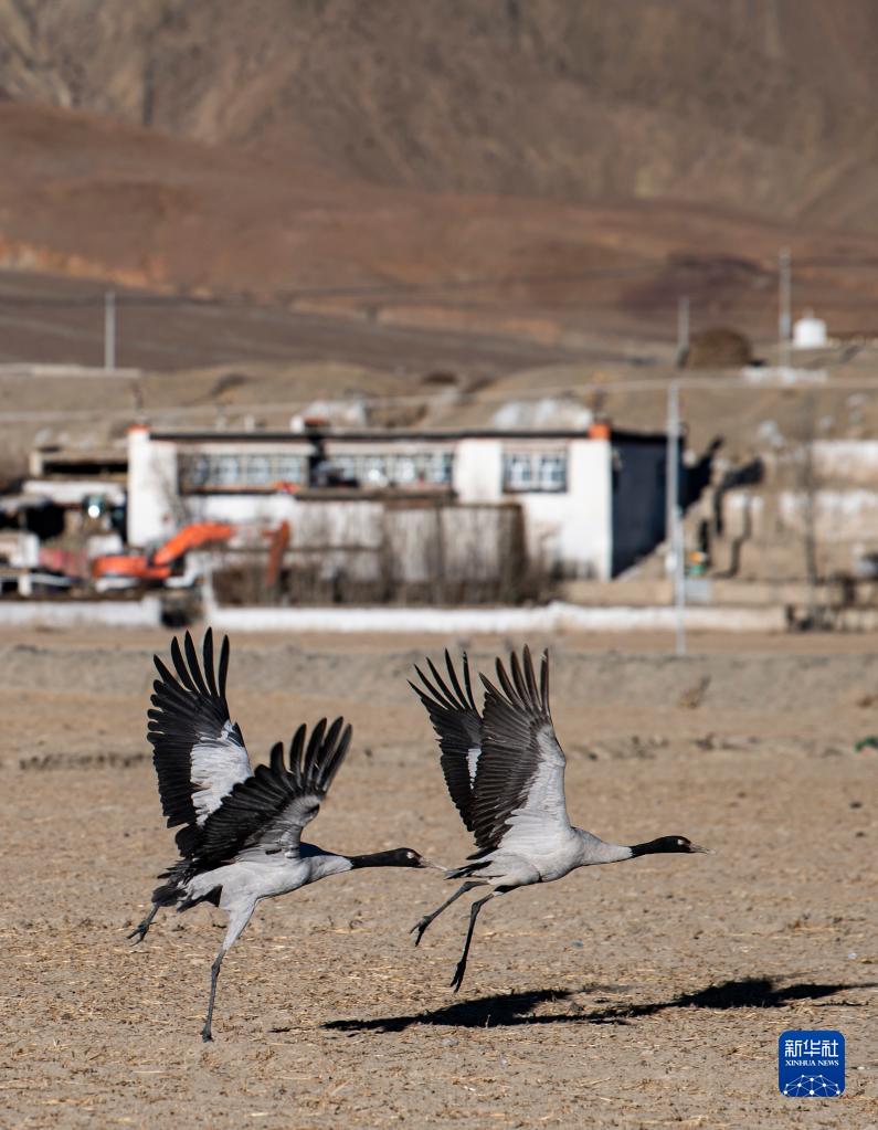 在西藏雅魯藏布江中游河谷黑頸鶴國(guó)家級(jí)自然保護(hù)區(qū)日喀則片區(qū)拉孜縣附近,大量越冬的黑頸鶴翩翩起舞,迎接春天的到來(lái)。