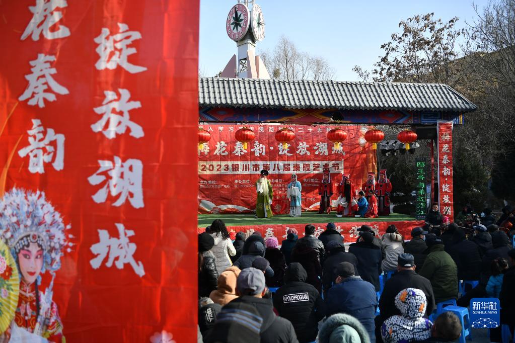 1月25日,群眾在寧夏銀川市賀蘭縣潤園文化廣場觀看秦腔劇《烙碗記》。