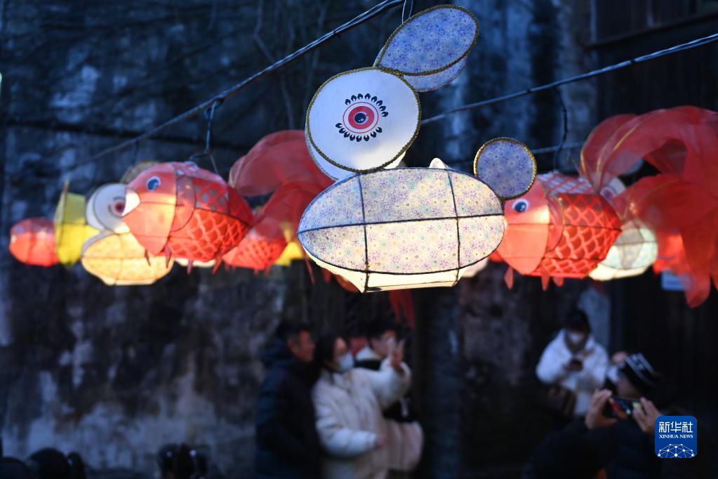 1月25日,游客在浙江省桐鄉(xiāng)市烏鎮(zhèn)景區(qū)參觀生肖主題花燈。