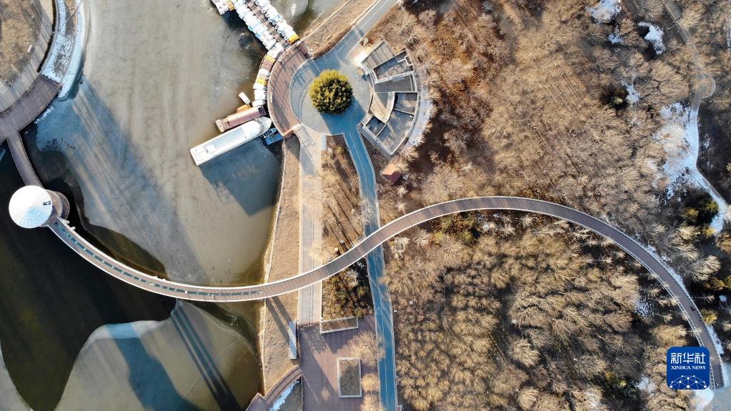 這是1月24日拍攝的石家莊市泊水公園一景(無人機照片)。