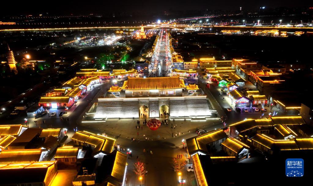 這是1月24日晚拍攝的河北省石家莊市正定古城夜景(無(wú)人機(jī)照片)。