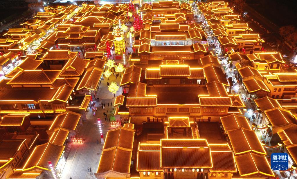 1月25日,游客在山東省臨沂市郯城縣郯國古城景區(qū)游玩(無人機(jī)照片)。