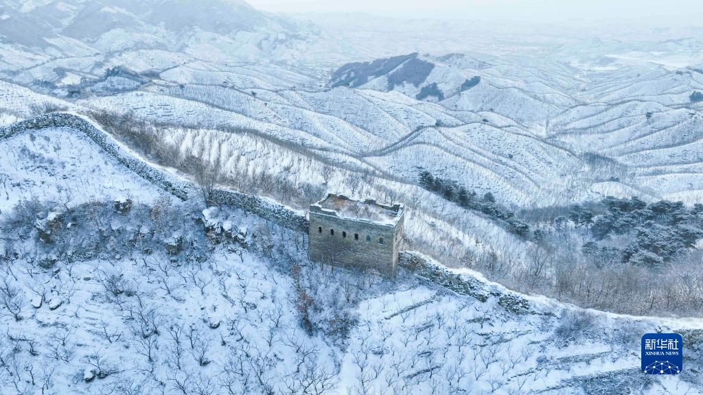 這是1月23日拍攝的河北省遵化市長城雪景(無人機照片)。