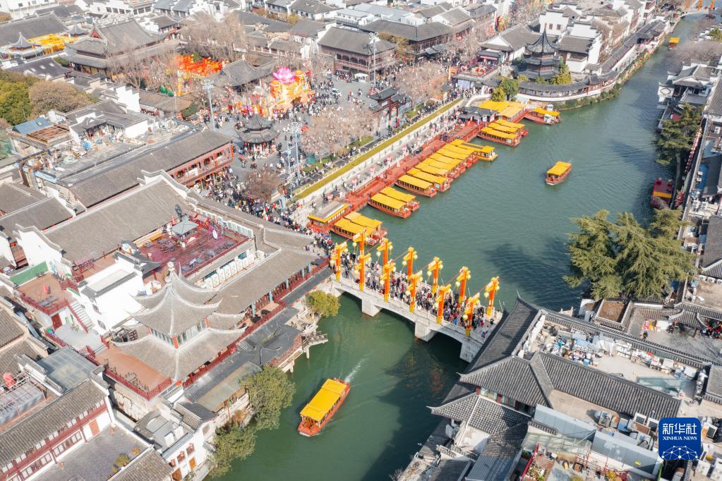 1月26日,游人在南京夫子廟景區游覽(無人機照片)。